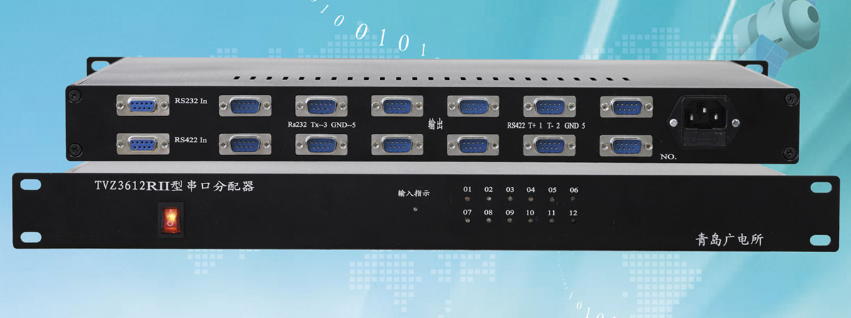 TVZ3612RII型串口分配器適用于工業(yè)標(biāo)準(zhǔn)RS-232C和RS-485傳輸信號的再生和分配。采用1U機(jī)箱和低功耗設(shè)計,適于在線不間斷使用(7x12h),免維護(hù)操作。